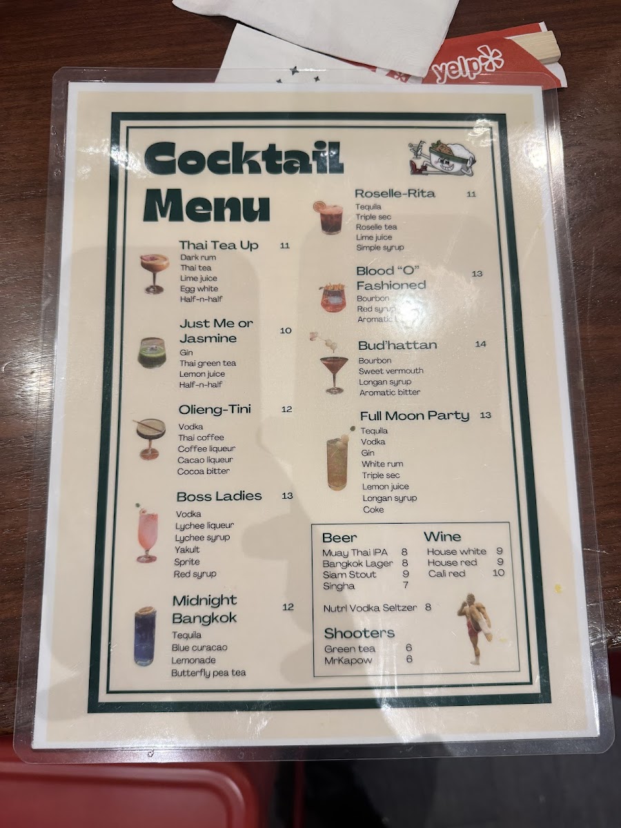 Street snacks like Spring Rolls and Crispy Chives Cake serve as perfect pre-meal bites, while spicy favorites like the Drunken TaLay tantalize taste buds with bold flavors. The drink selection, including Thai Tea and unique housemade cocktails, perfectly complements any meal.