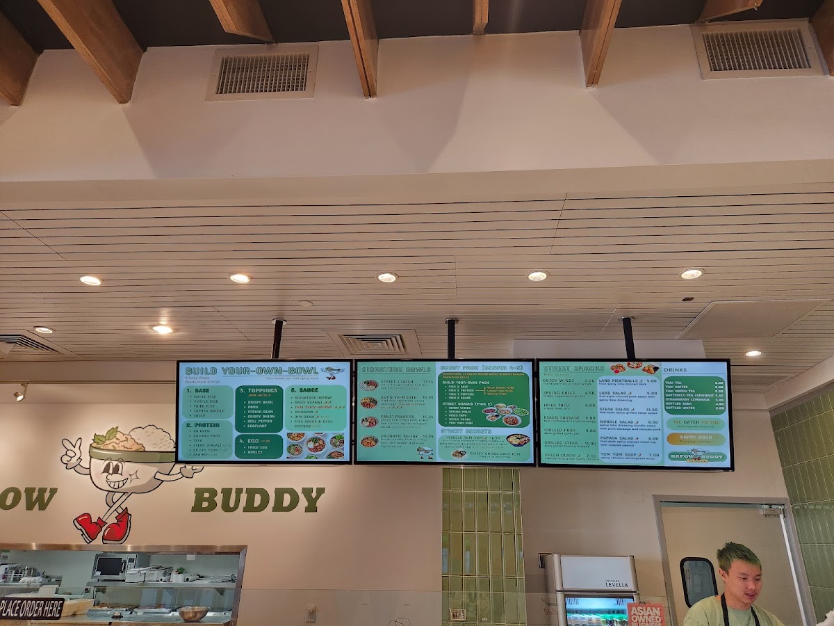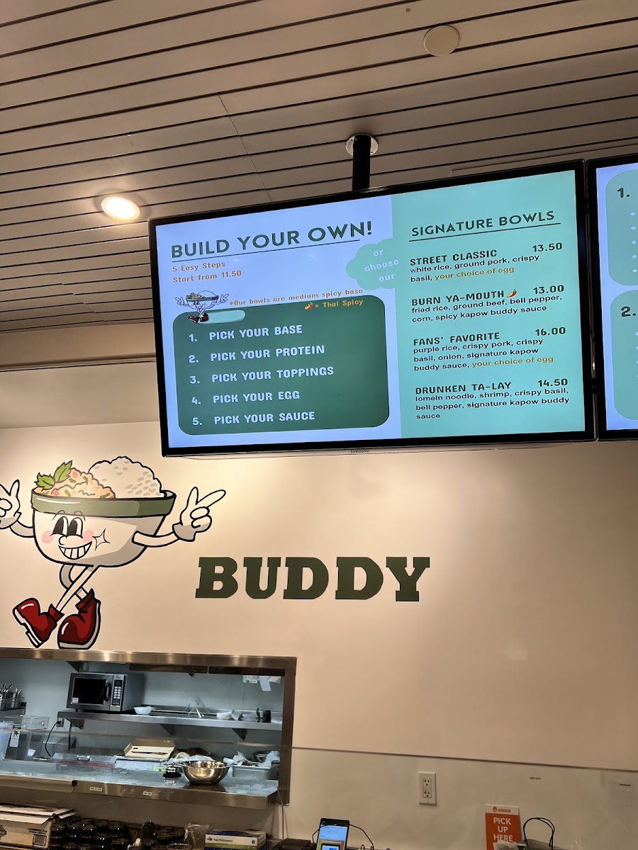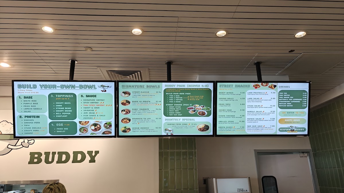 Kapow Buddy invites diners on a vibrant culinary journey in Bethesda, MD. Their signature bowls steal the spotlight, showcasing delights like the Kapow Pork Jowl, featuring tender pork jowl paired with crispy basil and a perfectly fried egg. Vegetarian options abound, too, such as the Veggie Buddies bowl brimming with fresh ingredients and the signature Kapow sauce.